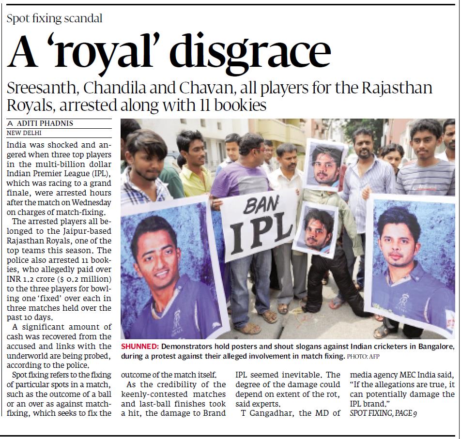 Players sent behind the bars for Spot Fixing